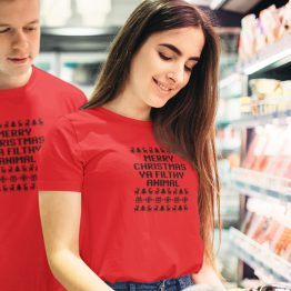 Bestel de nieuwste kerst t-shirts voor dames en heren veilig en snel bij 1001Caps! In onderstaand aanbod hebben we alle kerst t-shirts voor volwassenen opgenomen. Deze feestelijke outfits dragen stuk voor een stuk een grappige tekst of een leuke boodschap. Hiermee verschijn je dus altijd stijlvol op de kerstborrel of een ander feestje. Onze collectie is verkrijgbaar in twee modellen, namelijk met een dames- of een herenpasvorm. Daarnaast is ieder shirt in vele maten te bestellen. Dames kiezen uit de maten XS t/m 3XL en de heren uit maat XS t/m 5XL. Jouw order wordt overigens al binnen twee werkdagen thuisbezorgd! Dit betekent dat je je kleding ook vlak voor de feestdagen nog op tijd in huis hebt. Wil je ook een kerst t-shirt voor een vriend(in) of familielid aanschaffen? Dan bestel je deze tijdelijk extra voordelig, want deze maand zijn de verzendkosten vanaf €40,- helemaal gratis.