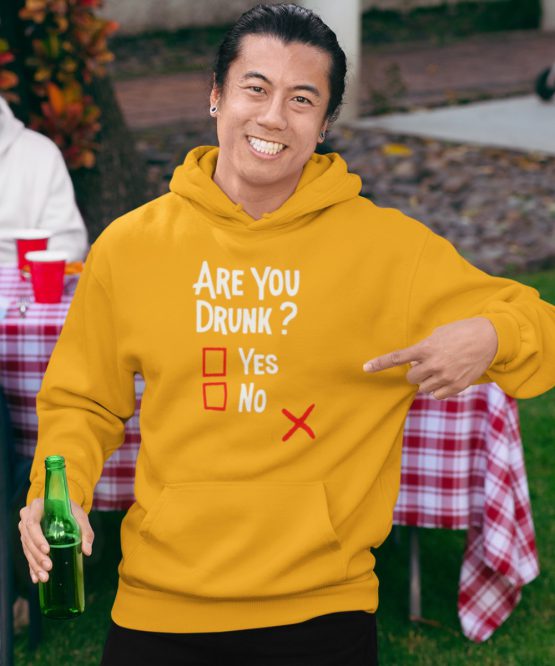 De grappige festival hoodie met Are You Drunk op de borst is een exclusief model van 1001Caps! De uniseks fit maakt deze capuchon sweater geschikt voor zowel dames als heren. De trui is verkrijgbaar in twee kleuren: zwart en geel.