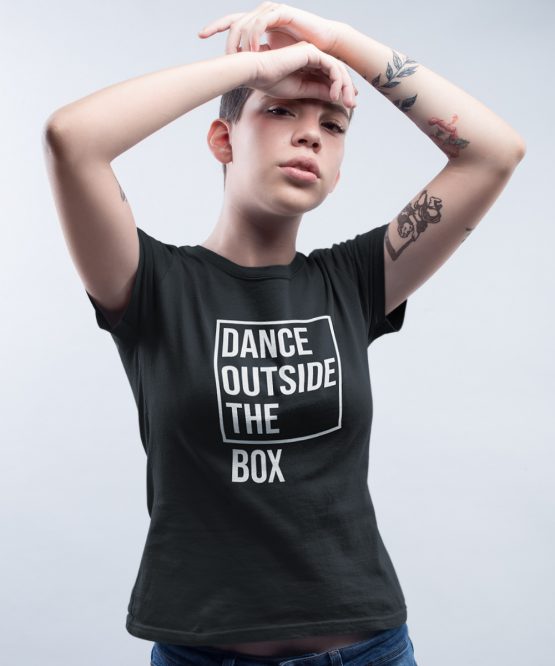 Bestel het festival shirt met de tekst Dance Outside The Box als je van dansen en feesten houdt! Dit unieke t-shirt is alleen bij 1001Caps te bestellen in vijf kleuren: zwart, wit, rood, roze en blauw. (Het witte shirt heeft een zwarte opdruk.) Kies je favoriete kleur, de juiste pasvorm (dames of heren) en de ideale maat hieronder.
