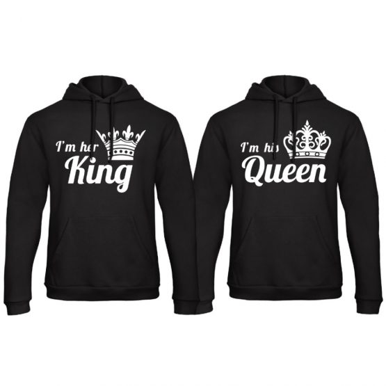 Bestel deze classic King & Queen hoodie sweaters voordelig en snel bij 1001Caps! Voor dames hebben we de Queen hoodie en voor de mannen de te gekke King hoodie. Het materiaal van de King & Queen sweater met capuchon bestaat uit 80% katoen en 20% polyester, dus deze voelt zacht aan en houdt je lekker warm. Ook verkrijgbaar in rood, geel en groen!