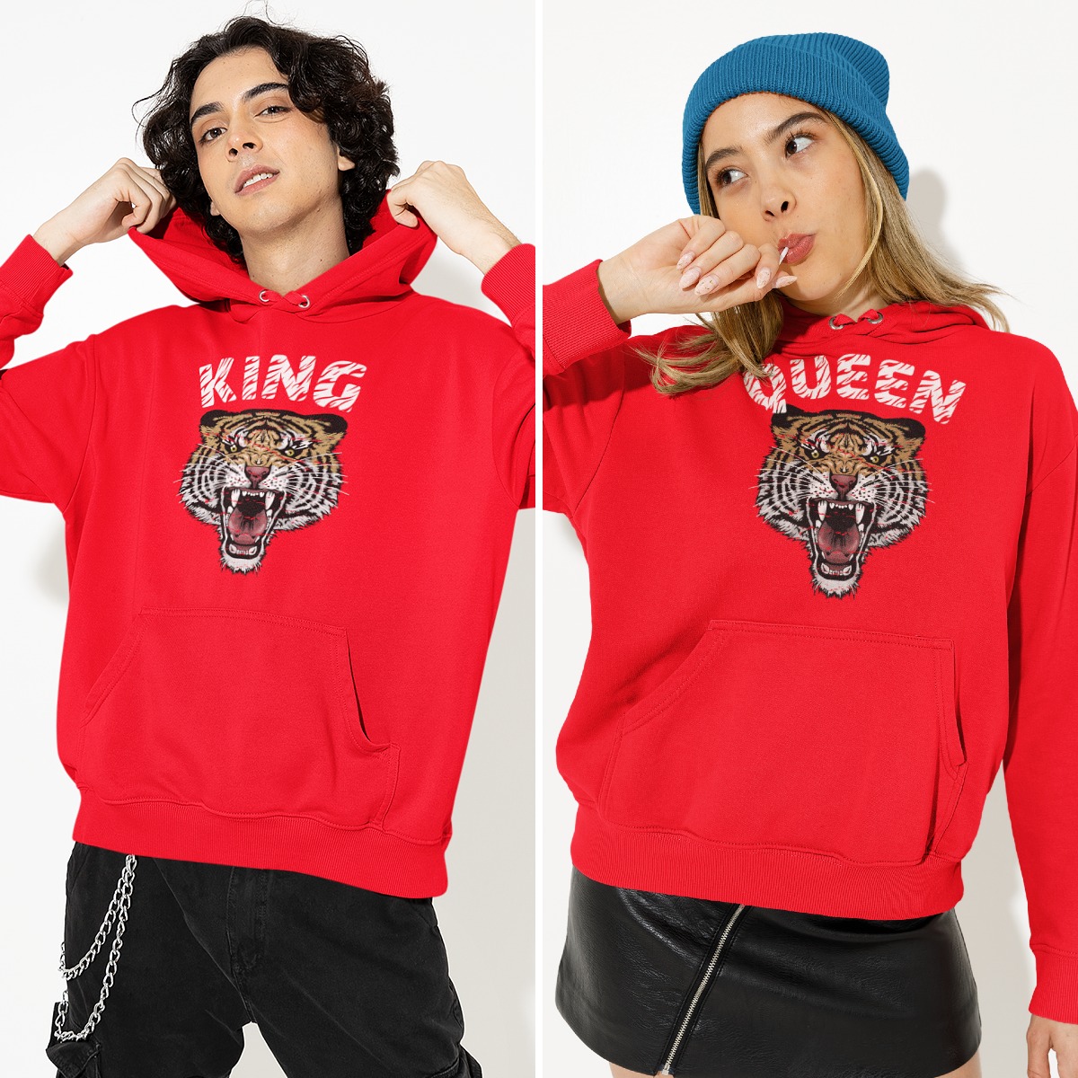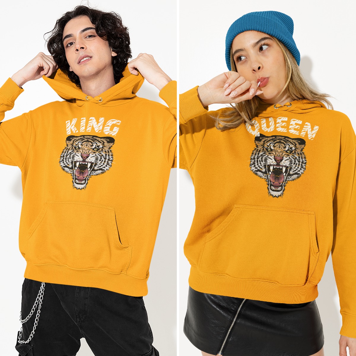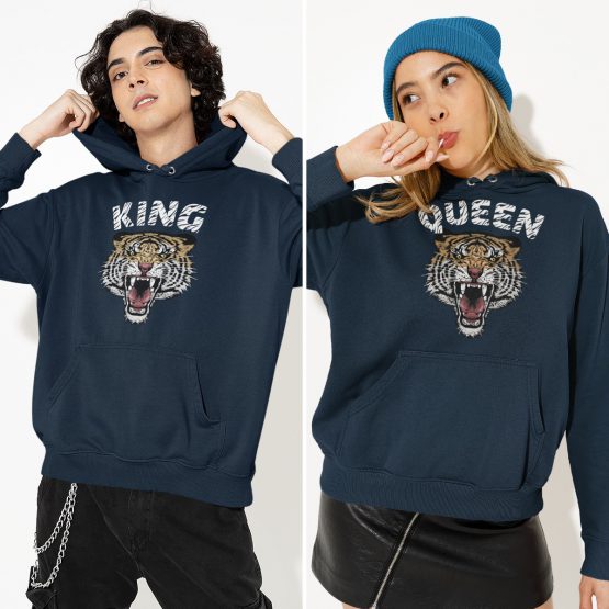 Deze unieke King en Queen hoodies hebben een full color tijger met prachtige details! Het setje is alleen verkrijgbaar bij 1001Caps. Als jij en je partner een beestachtig koppel zijn, dan is dit het perfecte cadeau voor Valentijnsdag. De King Queen truien zijn leverbaar in 6 verschillende kleuren: zwart, groen, navy, rood, oranje en geel.