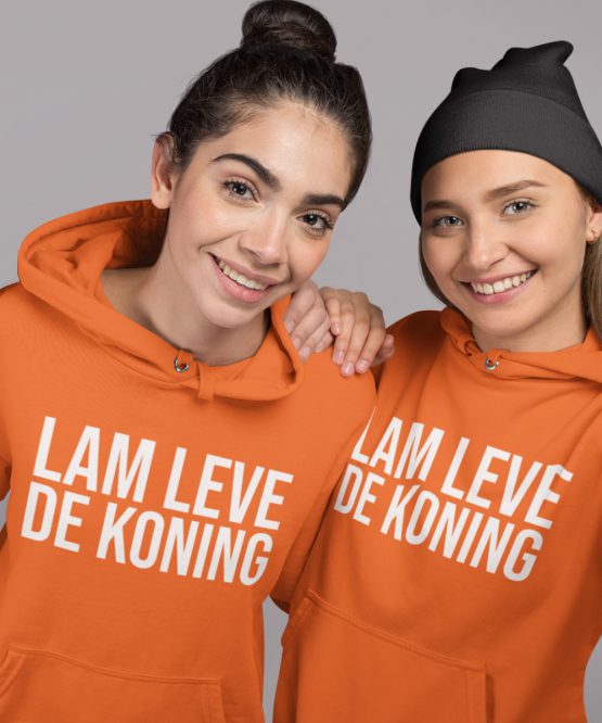 De Koningsdag Hoodie met de tekst Lam Leve De Koning bestel je natuurlijk alleen bij 1001Caps. Het grootste aanbod Koningsdag hoodies met unieke teksten bekijk je in onze shop. De sweaters hebben een uniseks fit en zijn dus geschikt voor dames en heren. Je kiest uit de maten XS tot 4XL, daarom is er voor iedereen de perfecte fit te vinden.