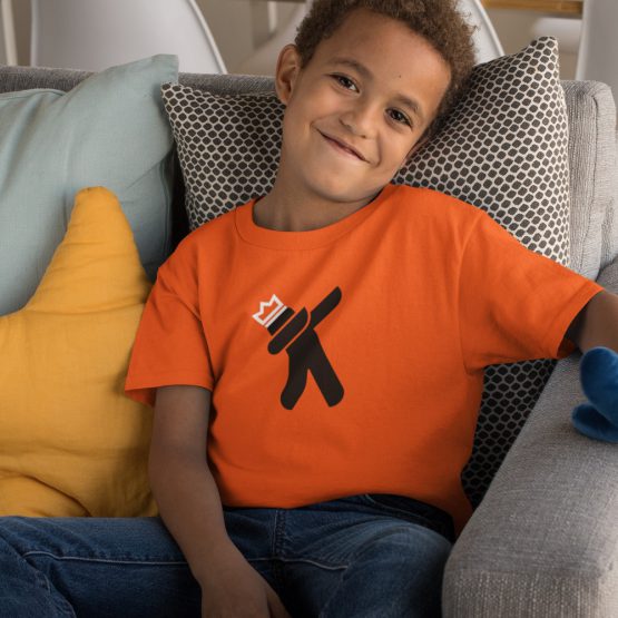 Dit Koningsdag t-shirt is speciaal voor kids gemaakt en heeft de bekende Dab King op de borst staan. Het shirt is verkrijgbaar voor kids van 1 t/m 14 jaar. Veel van je vriendjes zullen je vragen om de dab te doen. Gelukkig, vind jij dat helemaal niet erg op Koningsdag! Bekijk onderstaande maattabel voor de beste fit.