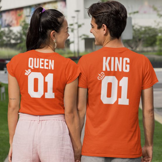 Oranje EK WK & Koningsdag T-Shirt King 01 Queen 01