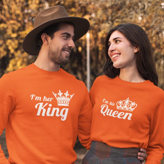 Deze klassieke Koningsdag truien met I'm her King en I'm his Queen op de borst zijn een absolute bestseller! Dit setje King en Queen truien heb je snel in huis, maar ze zijn ook per stuk verkrijgbaar. De trui heeft een uniseks regular fit en is daarom geschikt voor dames en heren. Bekijk ook alle Koningsdag kleding in onze webshop.