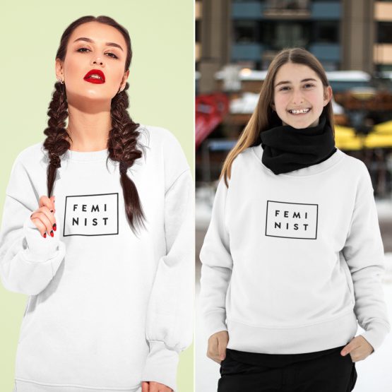 Deze matchende truien voor moeder en dochter met Feminist op de borst zijn voor alle sterke vrouwen gemaakt. De matching sweaters zijn erg leuk als cadeau op een verjaardag of op Moederdag. Leverbaar in maat XS - 4XL voor volwassenen en 3 t/m 14 jaar voor kinderen.