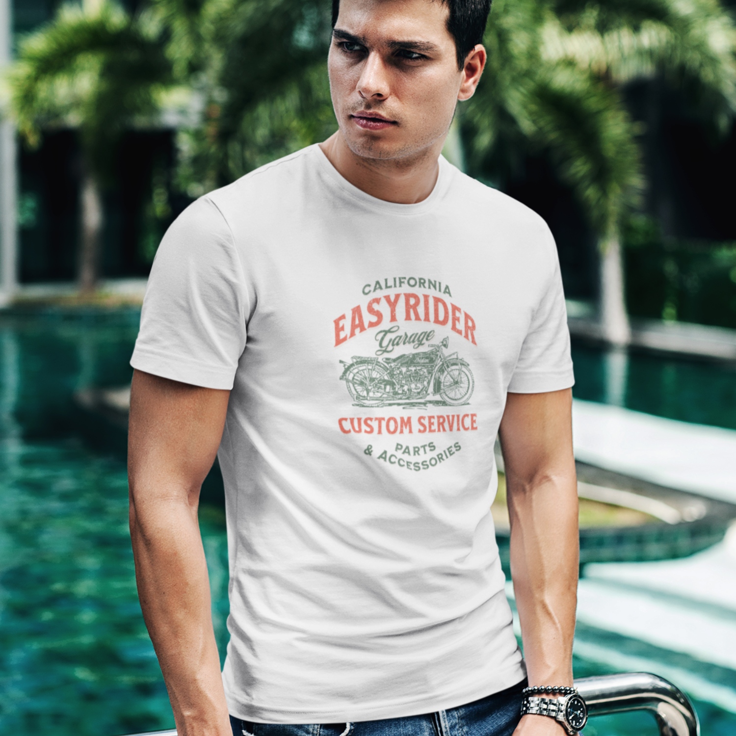 Dit witte motor t-shirt van California Easyrider Garage is gemaakt van 100% katoen en voelt heerlijk aan. Door de comfortabele fit is het een zeer populair shirt onder motorrijders! De kleding staat goed onder een leren jas en matcht perfect met een spijkerbroek. Verkrijgbaar met een dames- of een herenpasvorm.