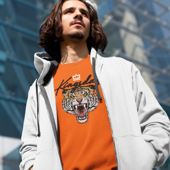 Deze oranje Kingsday Tiger Crown sweater is een van de stoerste outfits voor Koningsdag. Je verschijnt met deze trui stijlvol op het feest! Daarnaast is de kleding verkrijgbaar in maat XS t/m 4XL. Het heeft een uniseks pasvorm, geschikt voor dames en heren.