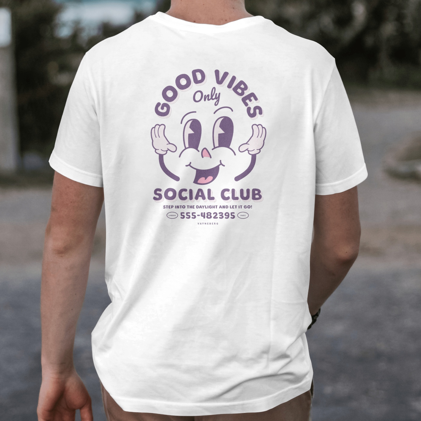 Dit witte Good Vibes Only Social Club t-shirt met rugprint is voor iedereen die een positieve vibe wil creëren! Het heeft een uniek retro design dat geïnspireerd is door de 80's en het is gemaakt van 100% comfortabel katoen. De kleding heeft een uniseks-/herenpasvorm. Leverbaar in maat XS t/m 5XL.
