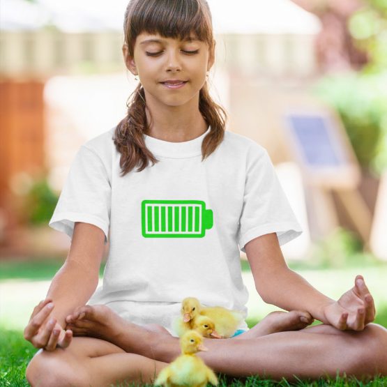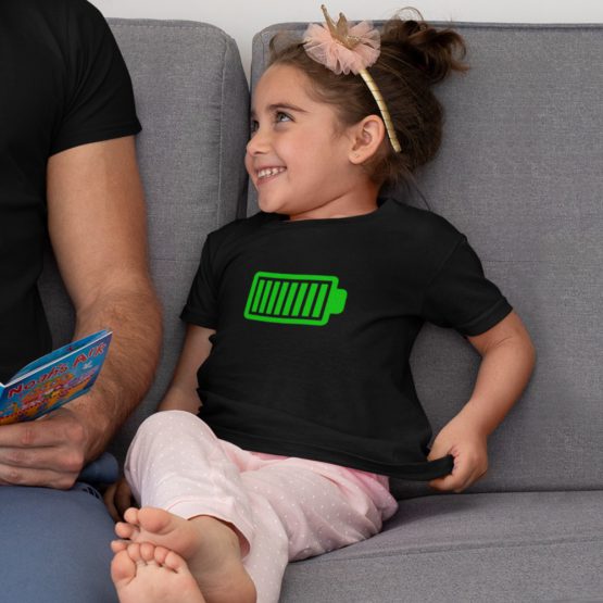 Dit kindershirt met groene "Battery Full" print is te bestellen in 3 kleuren, namelijk zwart, wit en groen. Het shirt is vrijwel voor iedereen verkrijgbaar, want je kiest uit de maten 1 t/m 14 jaar. Bekijk de maattabel onderaan de pagina voor de perfecte fit voor jouw zoon of dochter.