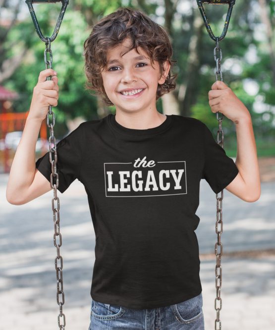 Het The Legacy kindershirt is een uitbreiding op het vader en zoon setje, die matcht met The Legend. Bestel deze leuke kinderkleding in twee kleuren (zwart of wit) met een opdruk in contrastkleur. Tevens is het t-shirt verkrijgbaar in maar liefst 6 maten. Daarom is de kleding geschikt voor kinderen van 1 t/m 14 jaar.