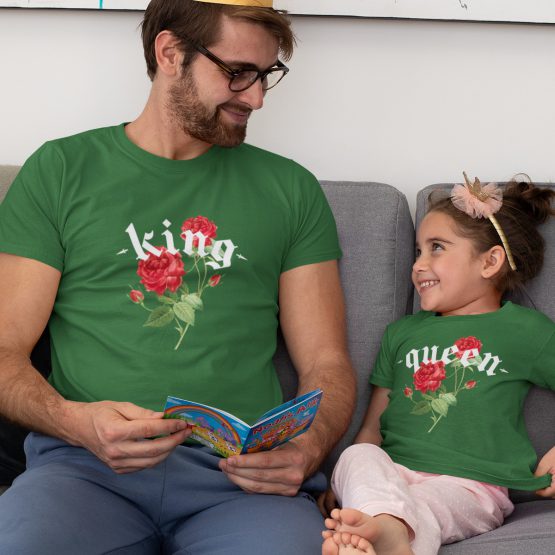 • Vader Dochter T-shirts King Queen Rose Dagger Groen