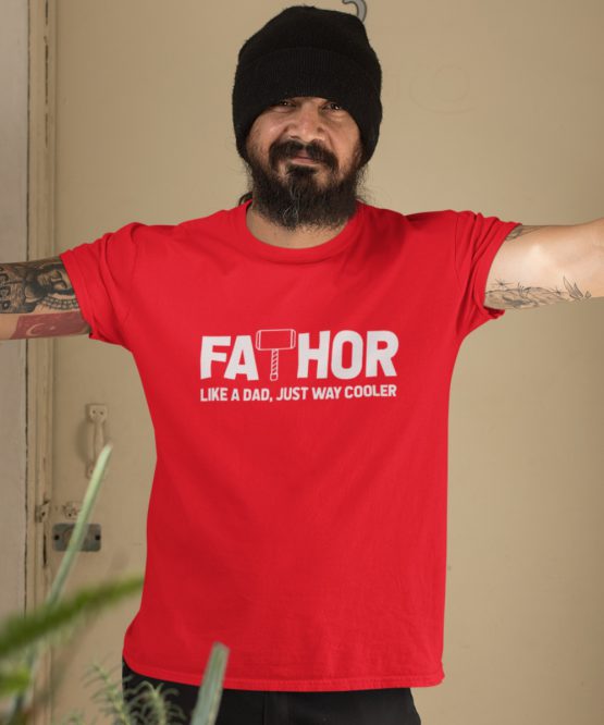 Het Fathor Vaderdag t-shirt geeft een kleine knipoog naar het mythische figuur Thor. Het is dus alleen voor de sterkste papa's in Nederland en België! Bestel het t-shirt is de kleuren zwart, wit en rood, verkrijgbaar in de maten XS t/m 4XL. Gemaakt van 100% voorgekrompen ringgesponnen katoen voor extra duurzaamheid.