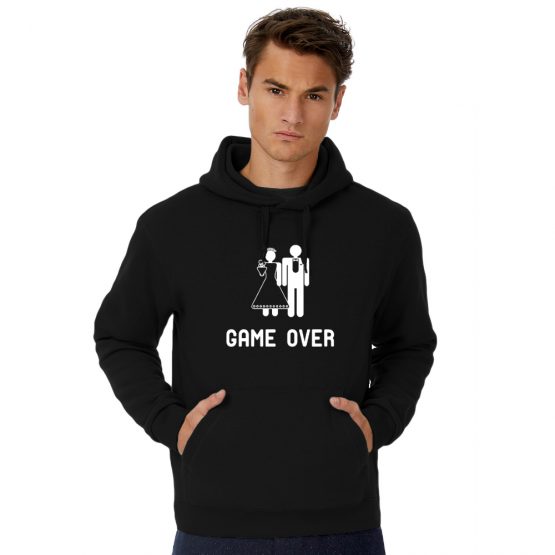Deze vrijgezellenfeest hoodie is een van de nieuwste modellen in de collectie! De stof van de vrijgezellen hoodie is gemaakt van 50% katoen & 50% polyester en heeft de tekst "Game Over" op de borst. De kleding voelt heerlijk warm aan en is zeer comfortabel: heerlijk voor een zachte zomeravond en koude herfst / winter. Bestel de vrijgezellenfeest trui met capuchon voor de bruidegom en maak er een mooie dag van!